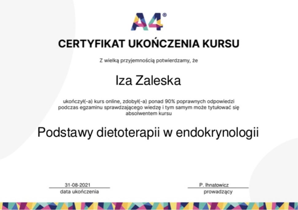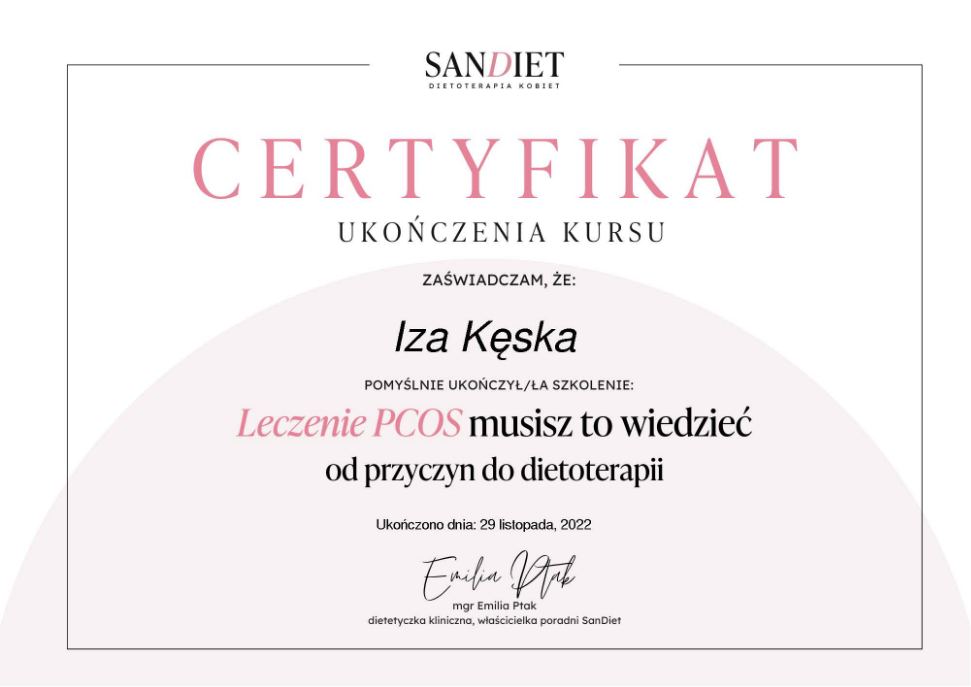 Parę słów o mnieMoja pasja do dietetyki zrodziła się na podstawie moich własnych problemów zdrowotnych – najpierw niedoczynność tarczycy, a później problemy z układem pokarmowym. To wszystko sprawiło, że zaczęłam drążyć temat – czytać badania naukowe, szkolić się, a później – pracować z pacjentami.
